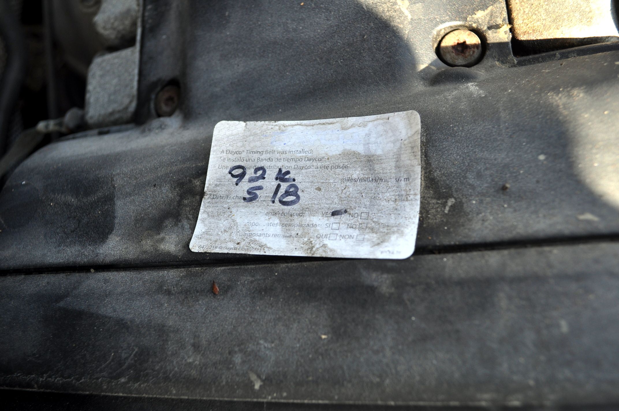 The timing belt service has been done at 92k miles.